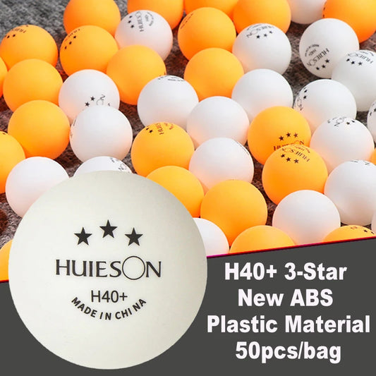 Huieson 50pcs H40+ 3-Star Table Tennis Ball New ABS Plastic Material Ping Pong Ball for Professional Player Competition Training